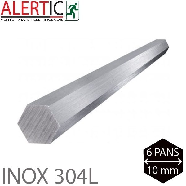 Barre Hexagonale diamètre 10 millimètres, en inox 304L étiré à froid, avec une longueur de 300 Millimètres.