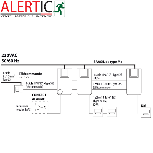 Télécommande Permettant l’état d’arrêt des BAAS de type 3, uniquement à l’état veille et hors présence de l’alimentation principale.