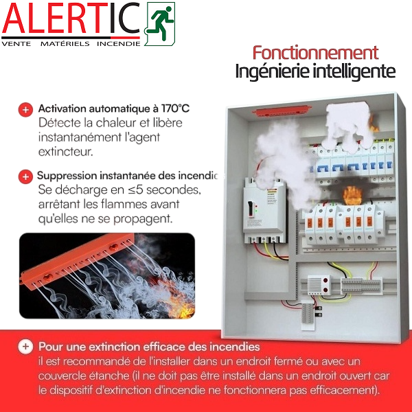 Mini extincteur automatique, et autonome, pour la protection des petits tableaux électriques.