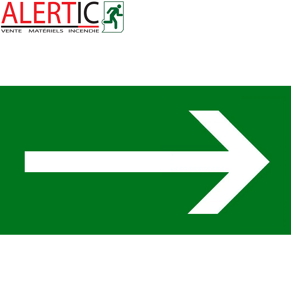Panneau signalétique indiquant la direction de la sortie de secours, avec flèche modulable.