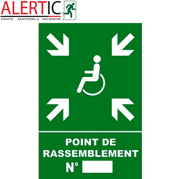 Panneau signalétique indiquant le lieu du point de rassemblement pour les personnes à mobilité réduite.
